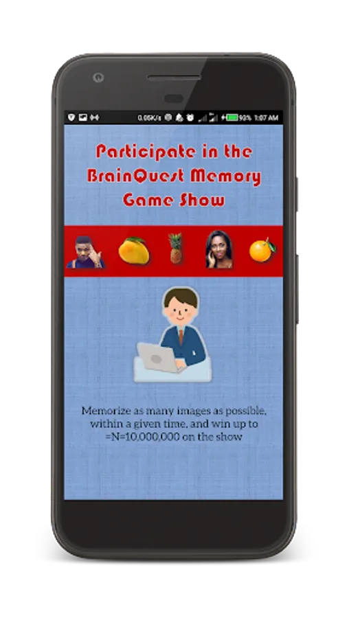 Download the free BrainQuest app and start playing the Daily Qualification Game. At the end of every Saturday, the top 5 participants with the highest points on the app will qualify to come to the studio and take part in the Memory Game Show.
