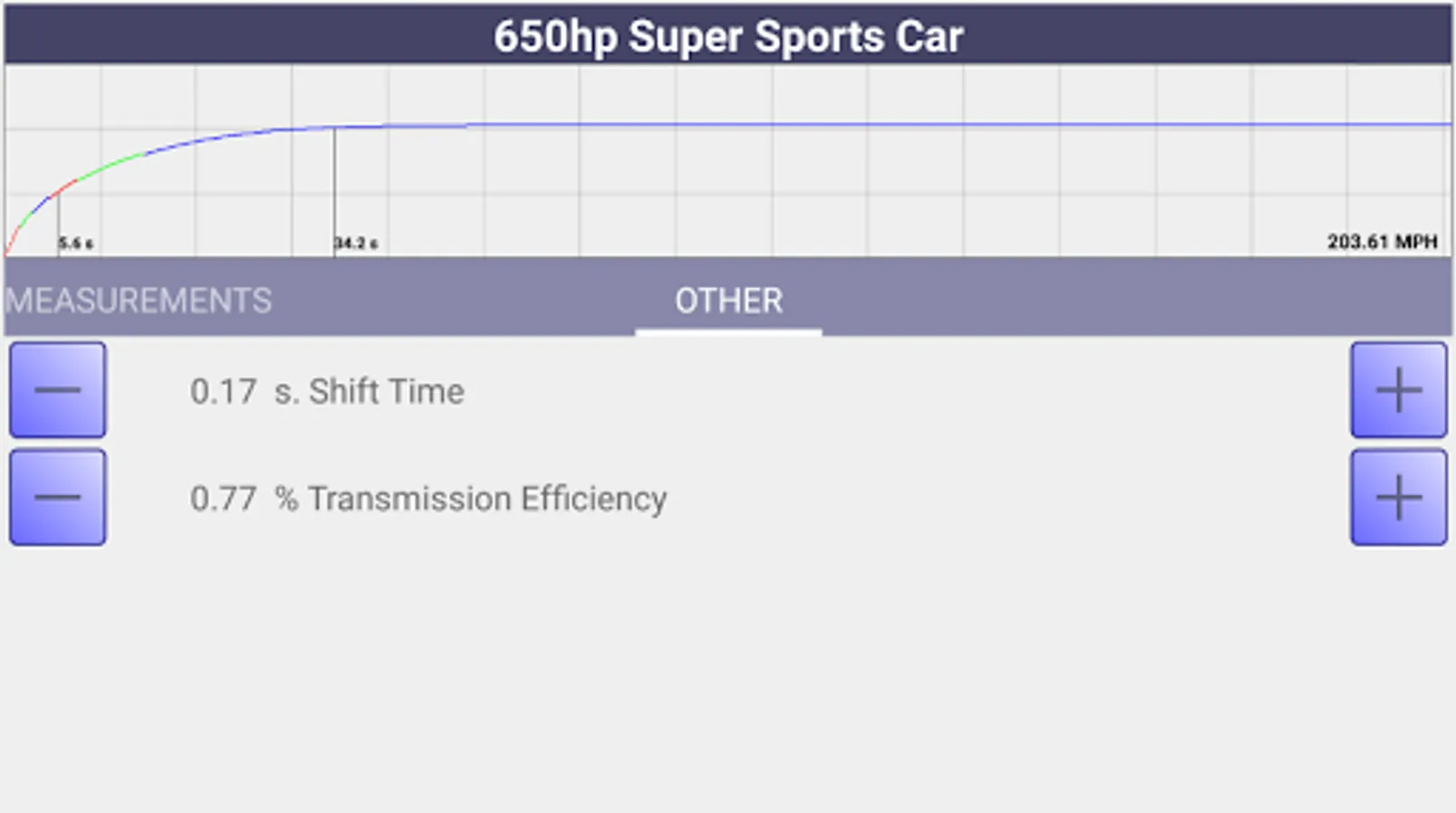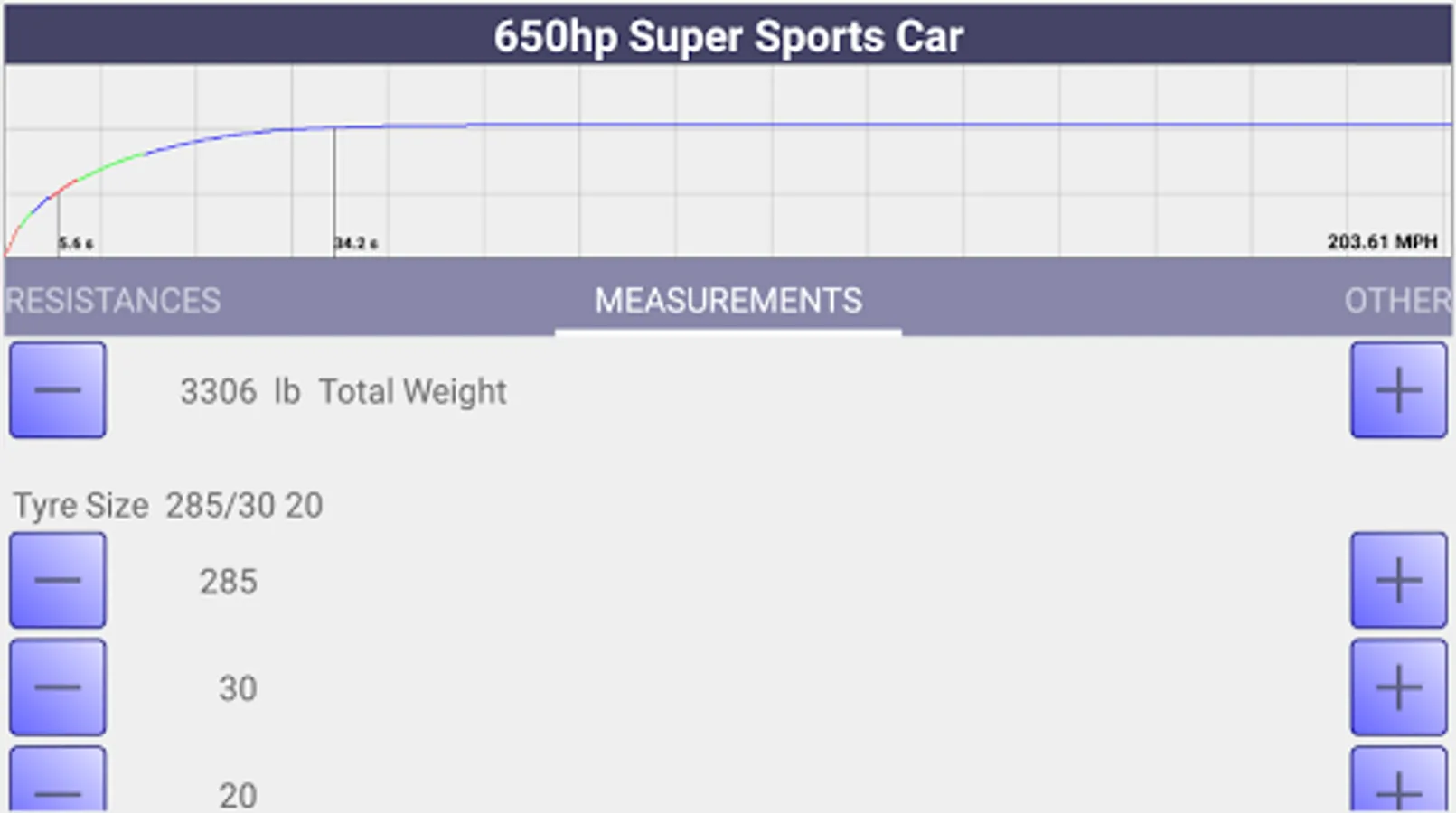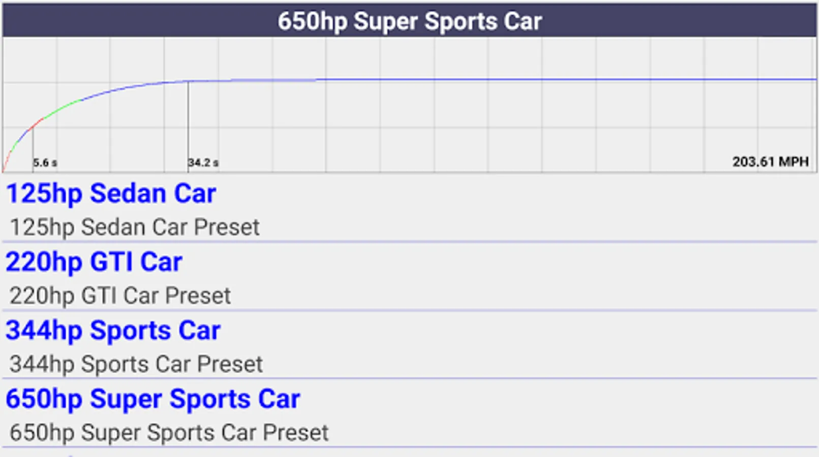 - Acceleration 0-60, 0-100, 0-200, 0-300,... and so on.