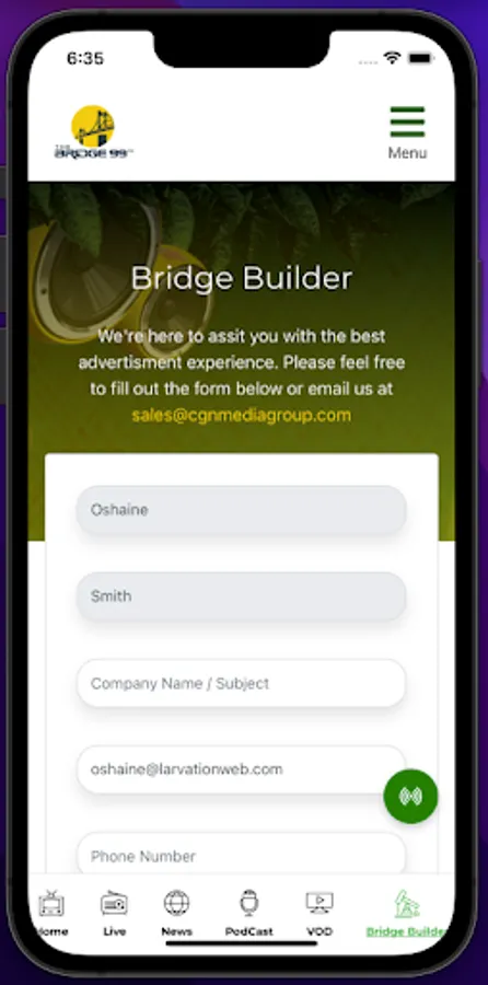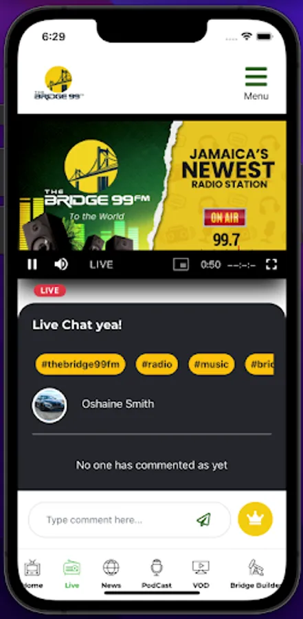 TheBridge99FM Mobile application has the live stream, News, Podcast, Video on Demand(VOD).
