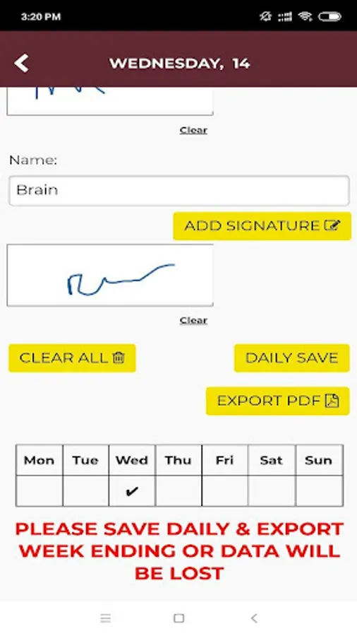 9. Export and save or email at the end of each week or email immediately for repairs.
