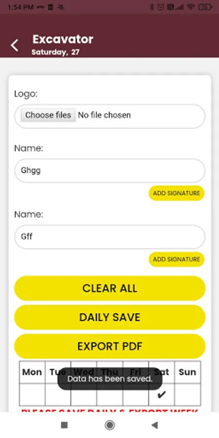 9. Export and save or email at the end of each week or email immediately for repairs.