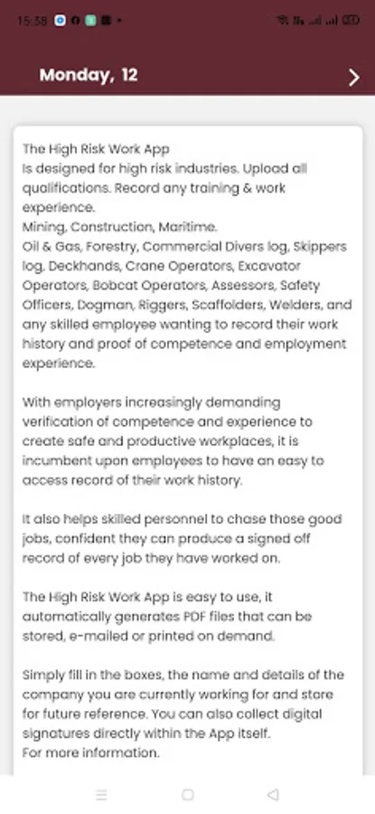 Is designed for high risk industries. Upload all qualifications. Record any training & work experience.