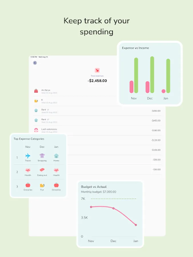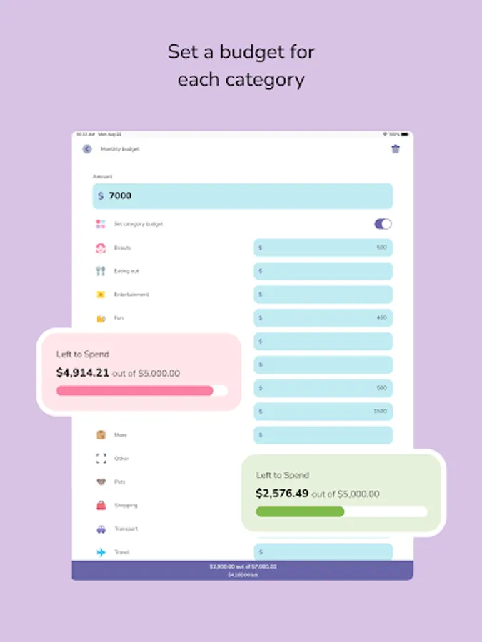 - Monthly Budget: Set a monthly budget and see at a glance if you're on track for the month or not