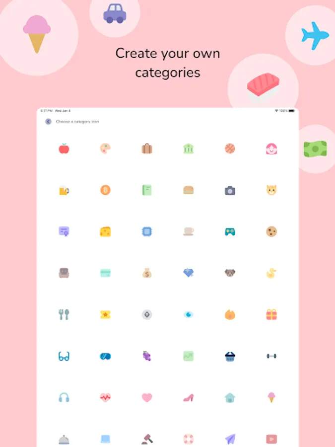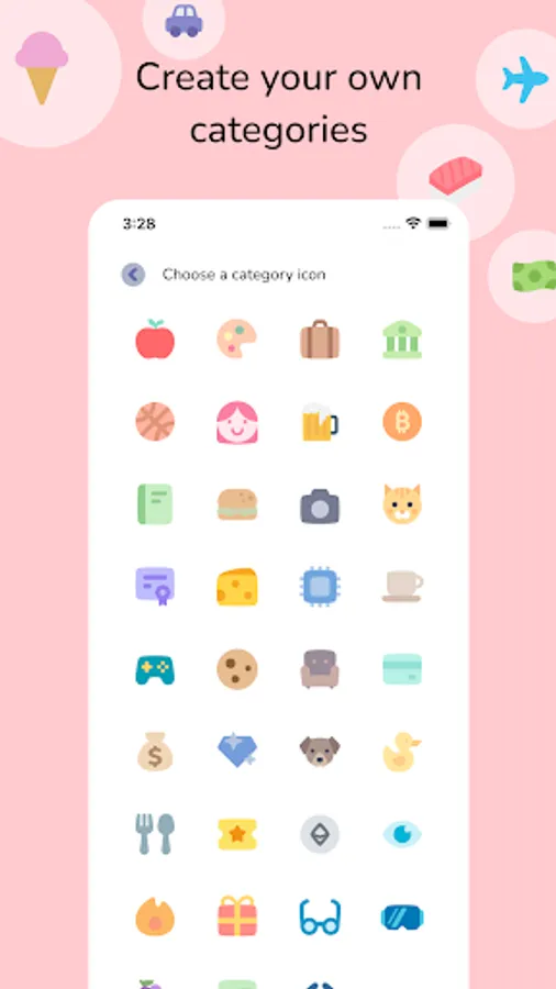 - Custom Categories: Choose from various cute icons to create and customise your categories.