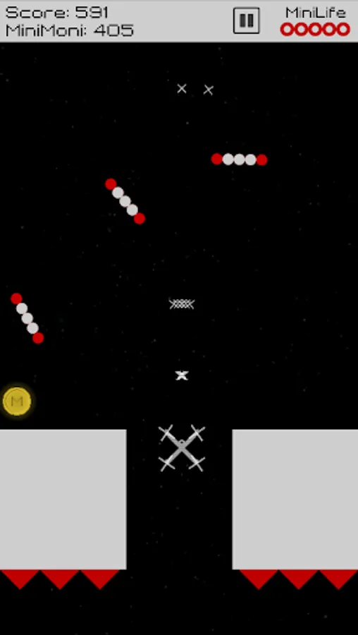 The purpose of the game is to stay as far as possible from the obstacles. Stay in the first place in the "leaderboard" to keep the leadership. Explode the enemies to collect Minimoni (in game currency) and turn them into new characters.