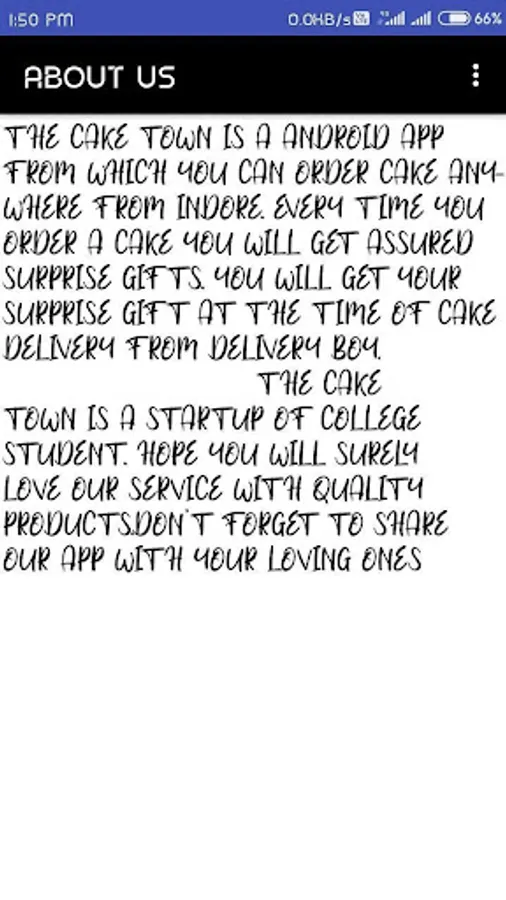 The cake town is an android app for cake and handmade gifts. You can order cakes and gifts from all over Indore. Every time you order a cake, you will get an assured surprise from our side.