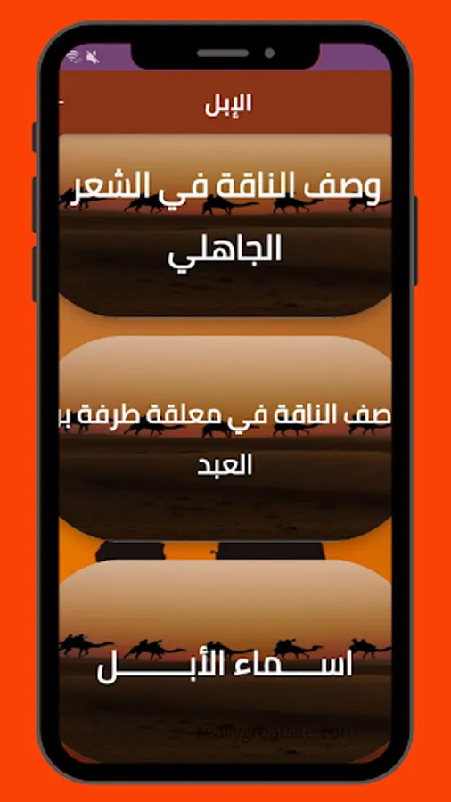 The camel application provides you with information about the Arab camel known as a single hump, and about its endurance of thirst in the desert. In addition, camels were Arab dirhams and their money.