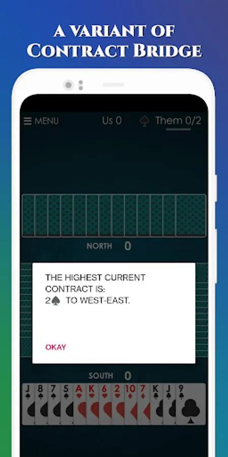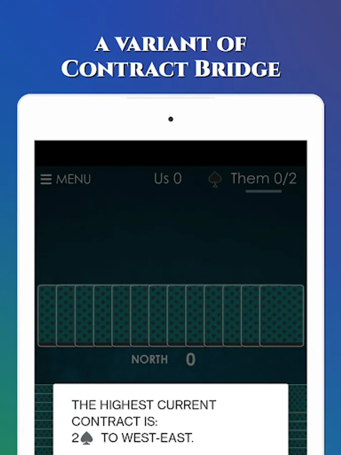 We hope you enjoy and learn playing our classic bridge card game. You can play the tournament offline without connecting to the internet or the wifi. It's a great way to practice and improve before playing and competing against your friends in the real world. Don't forget to check our other collections of card games which include Blackjack 21, Gin Rummy, Baccarat, Pyramid Solitaire & Crescent Solitaire.