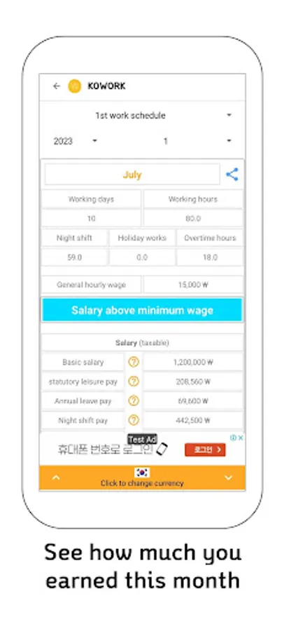 KOWORK app allows foreigners working in Korea to quickly and easily check the exact salary according to their work schedule.
