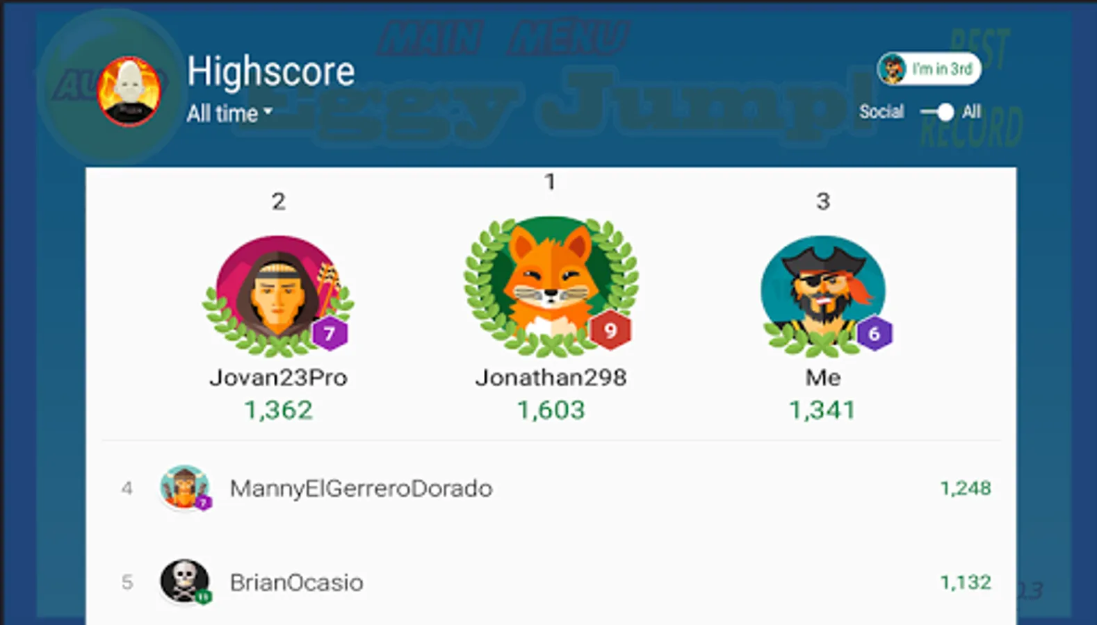 If you connect your account to Google Play playing online, you can unlock achievements and compete on the leaderboard where you can see your highest score and compare it with other players including your friends. Try to have the highest score and beat your friends' score and even try to beat your own score. Can you be the best? Do you think you have what it takes to be the best Eggy Jump! Player? Show that you can.