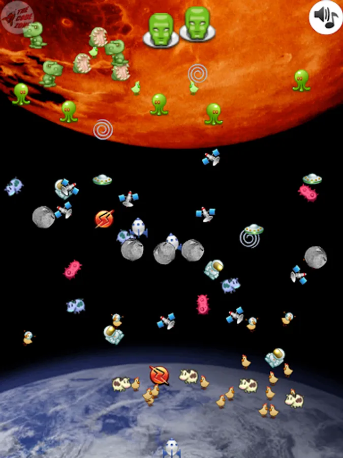The martian Head Honcho has launched an all-out attack on the Earth! Can you, a humble space cadet, make it through the martian armies of ships, aliens, and giant floating heads and destroy the Martian Head Honcho before he destroys the Earth?