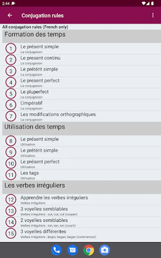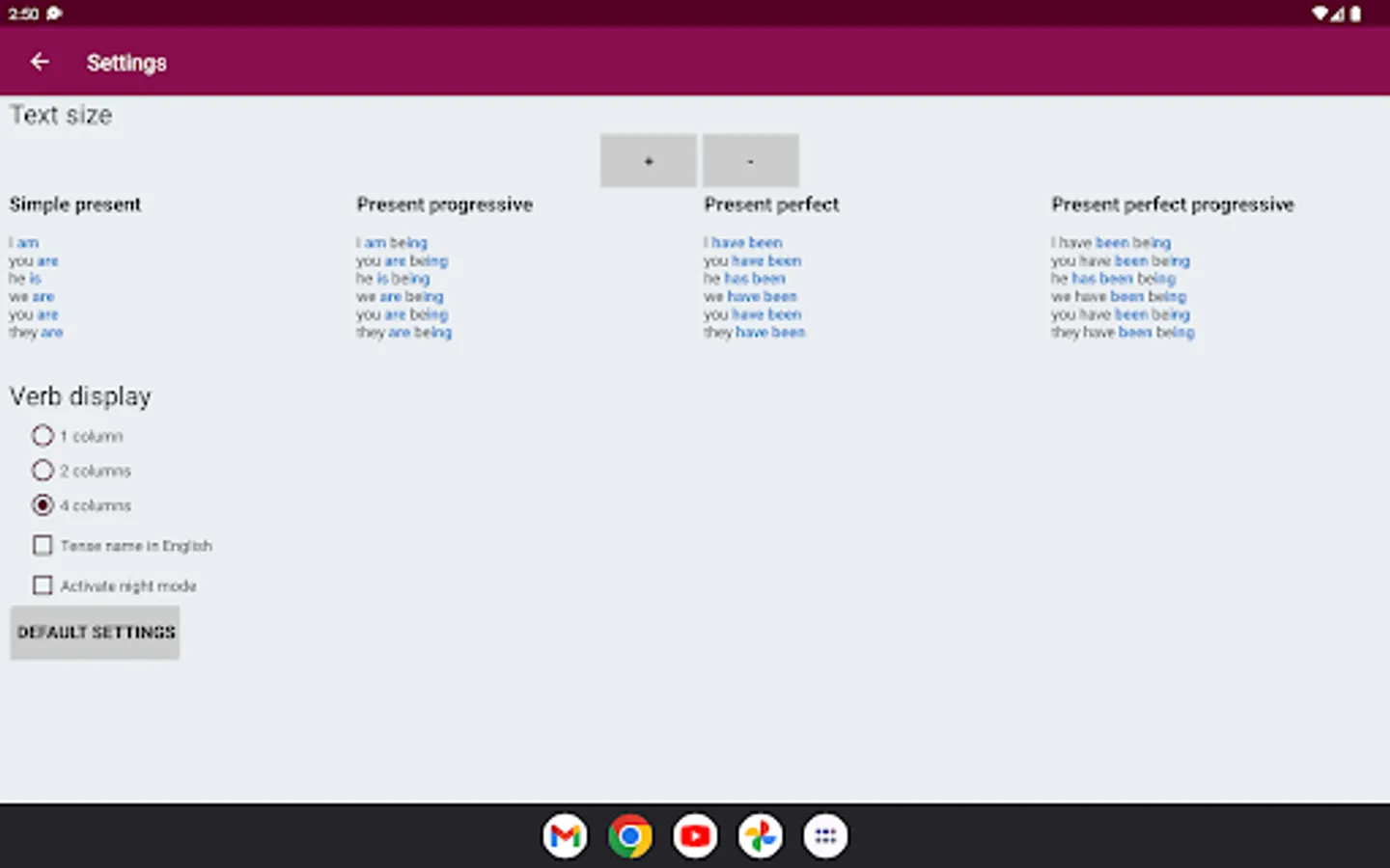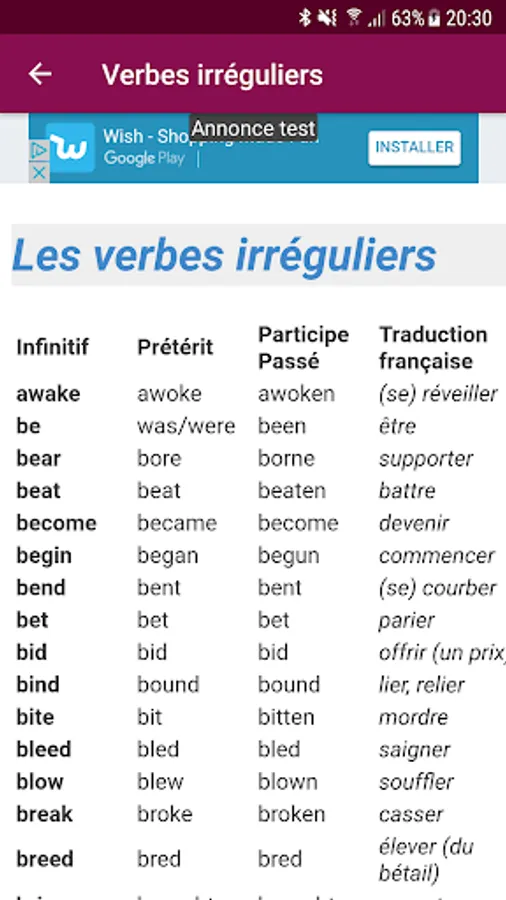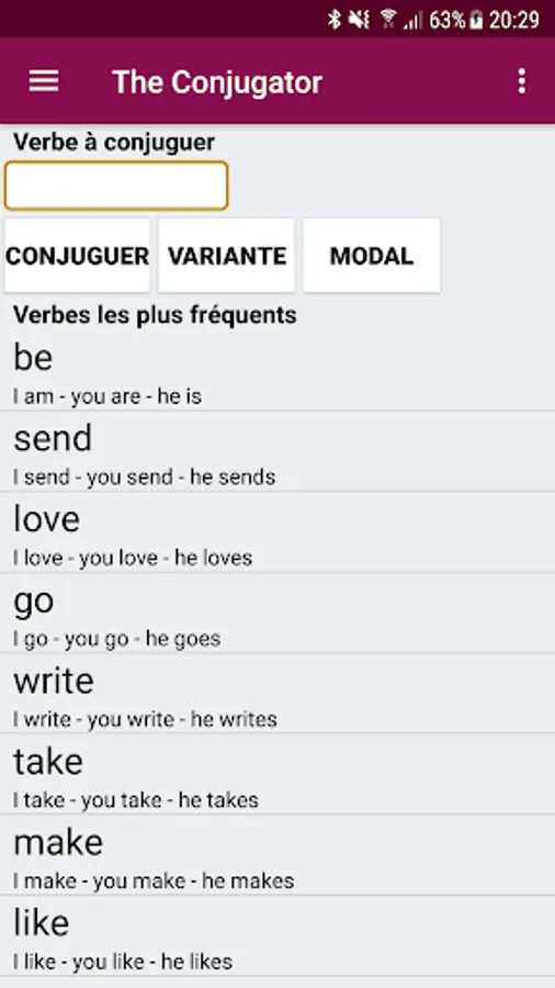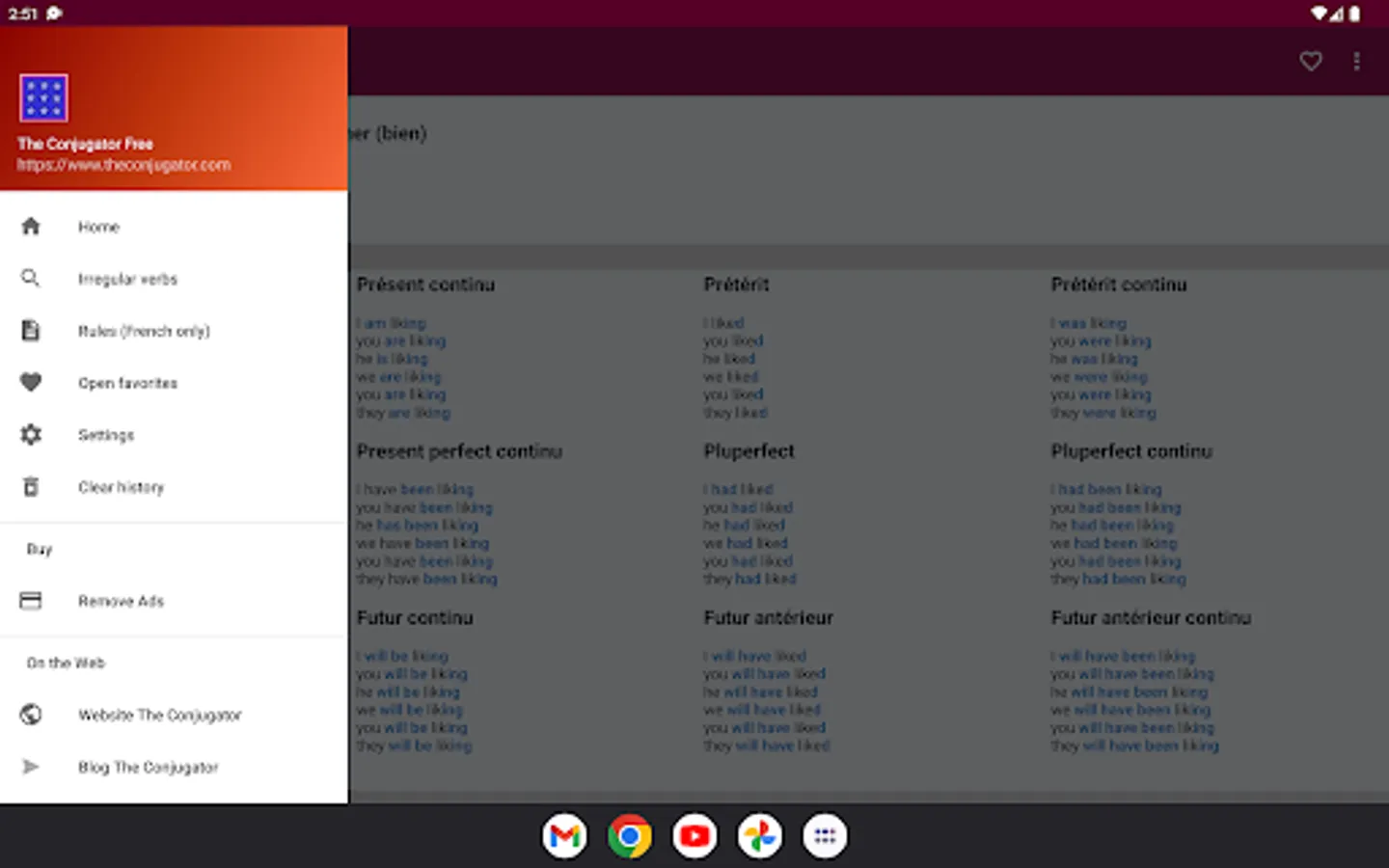 The Conjugator Free allows you to conjugate all English verbs without an Internet connection.