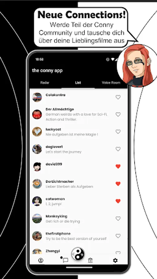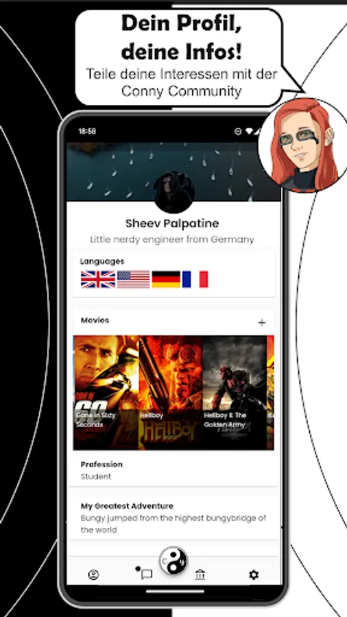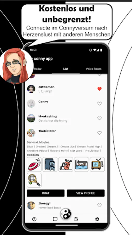 Whether you're looking for new friends in the area or just want to chat about your favorite movies, Conny helps you make connections.