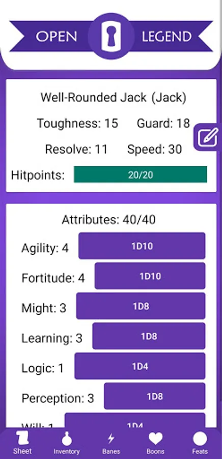 Open RPG is an app that allows you to carry your Open Legend character sheets anywhere! This app will simplify the character creation process so even new players can quickly jump into a campaign. Open RPG strives to make the Open Legend system as understandable as possible with easy to understand leveling, dice rollers, feats, banes, boons, and more. Open RPG can be as simple or detailed as you need it! Let Open RPG accompany you on your next adventure!