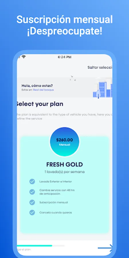 Through our App add the Code of your Residential and you can contract a monthly plan so that we wash your car weekly.