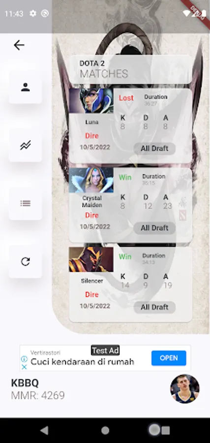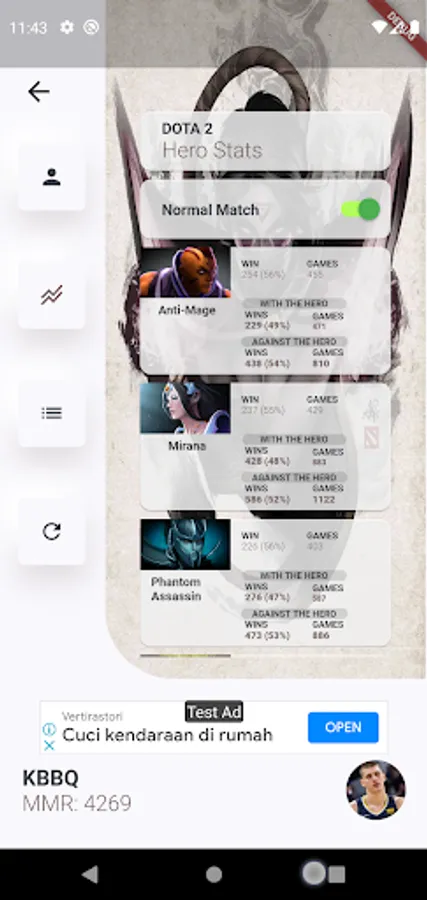 This application let you as Dota 2 player, to check your latest match history and overall stats inside the app.