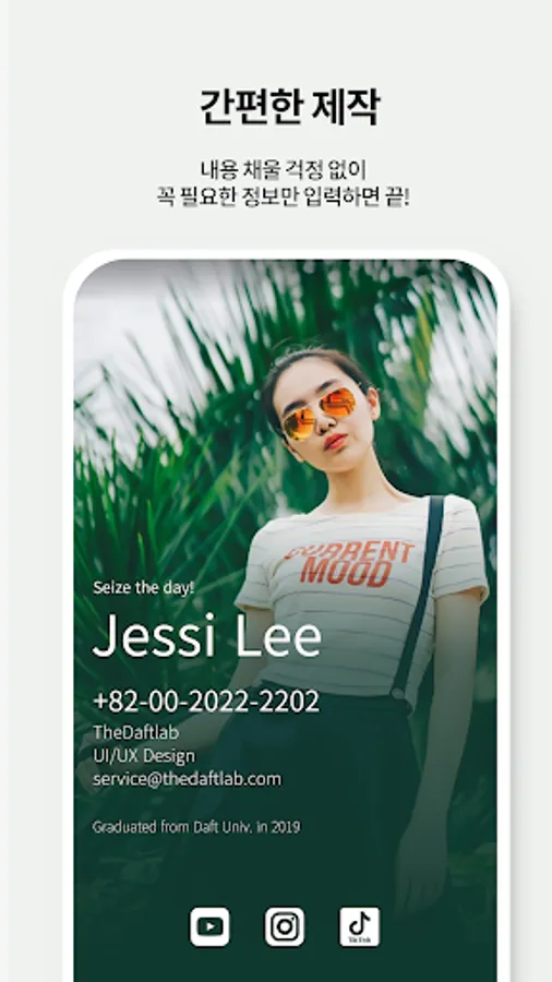 You can include your social accounts such as Instagram, YouTube channel, and Facebook in the business card!
