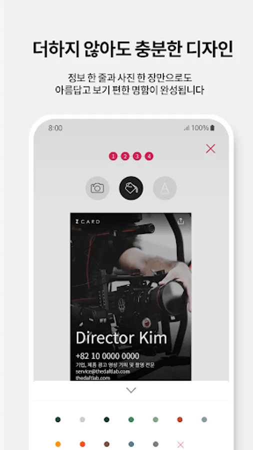 You can make a pretty business card without decorating it because it automatically chooses a color that suits you just by choosing a background photo.