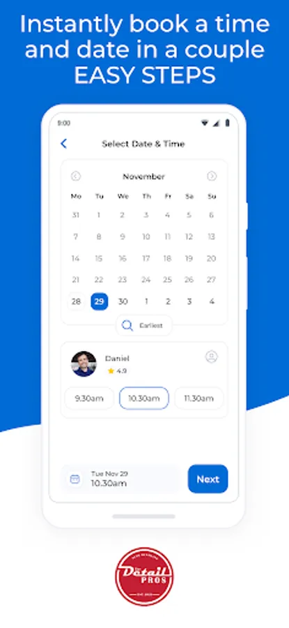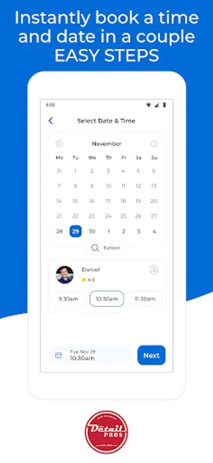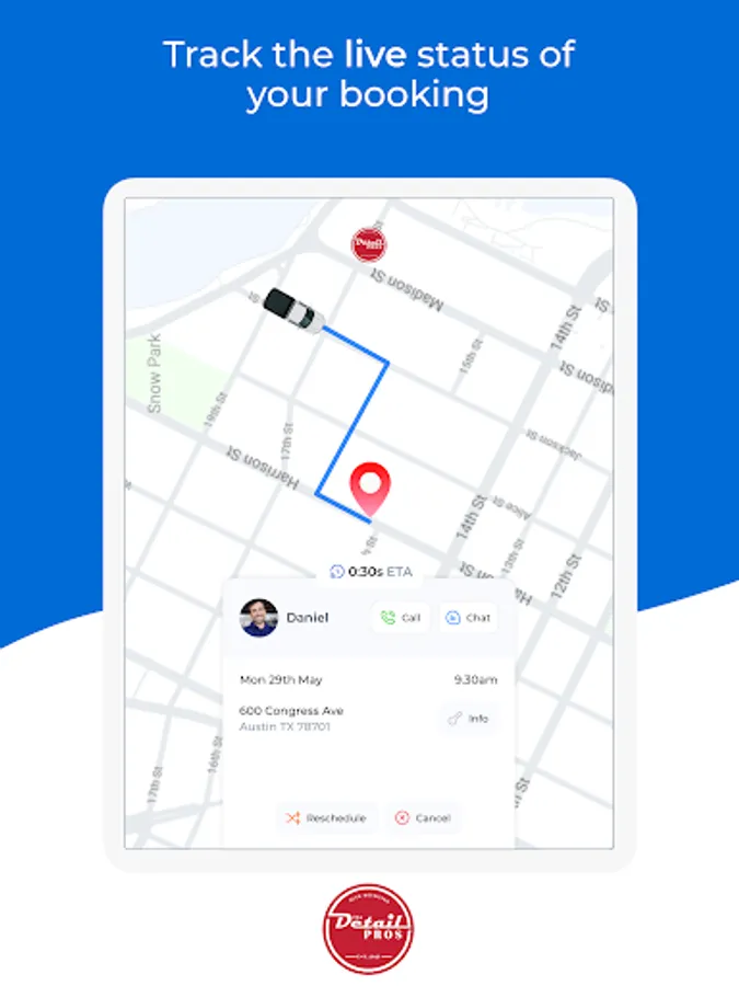 The Detail Pros app also allows you to select your preferred date and time for your appointment, making it easy to schedule a service that fits your schedule. Once you've made your selection, the app will send you a confirmation email, and you'll be able to track your appointment through the app, so you always know exactly when your detailing service will be performed.