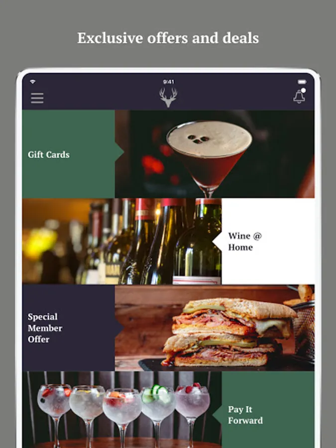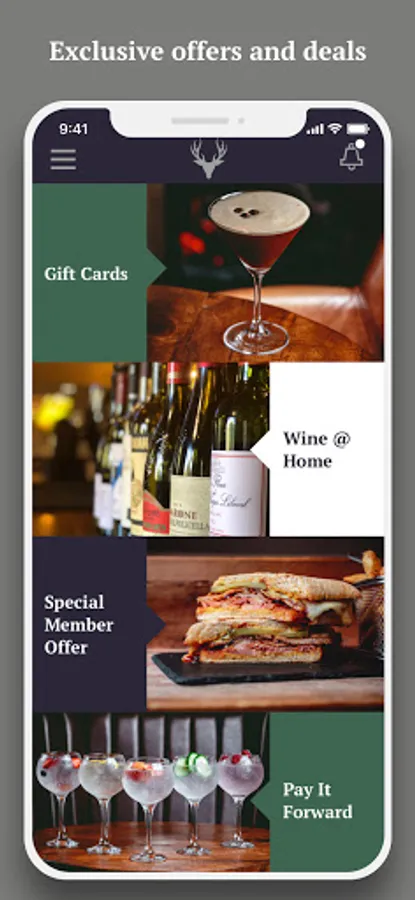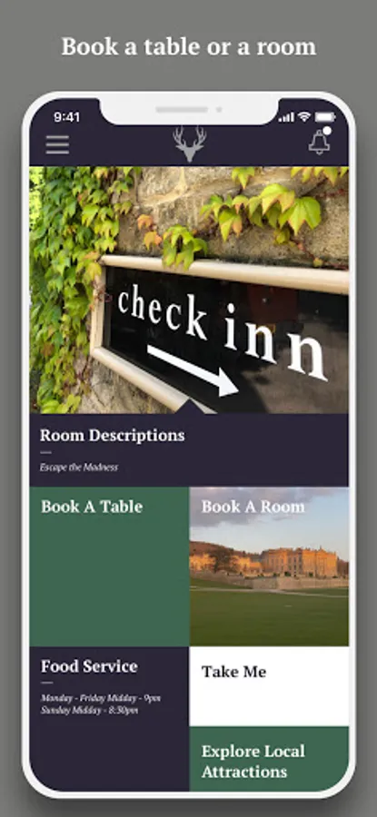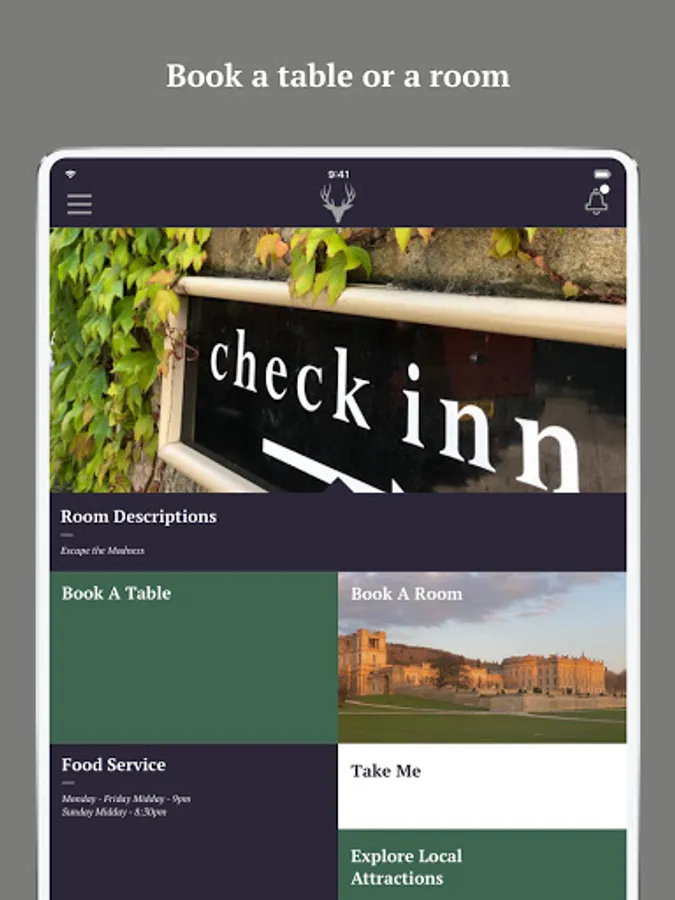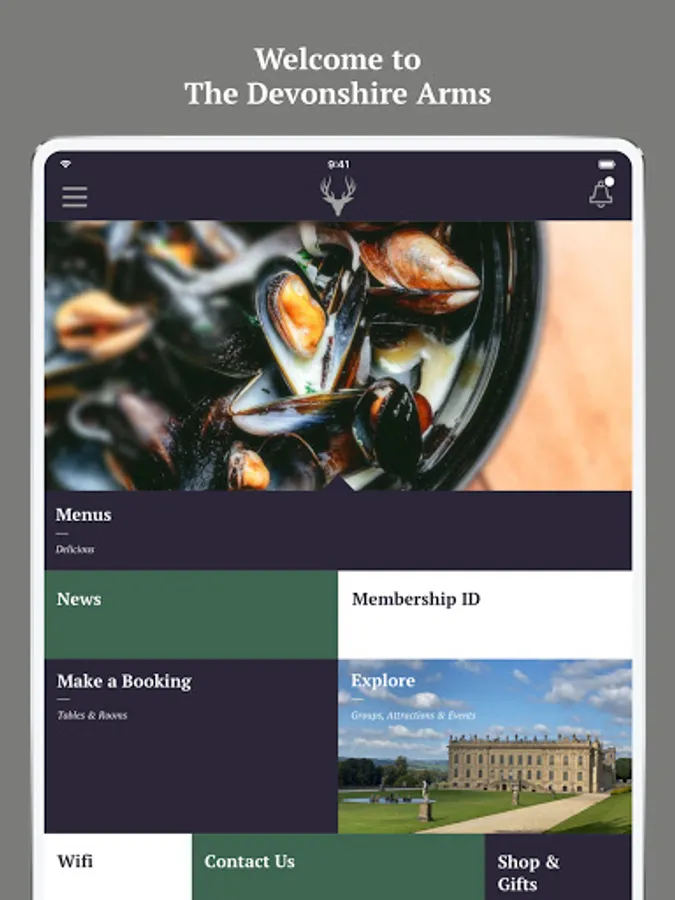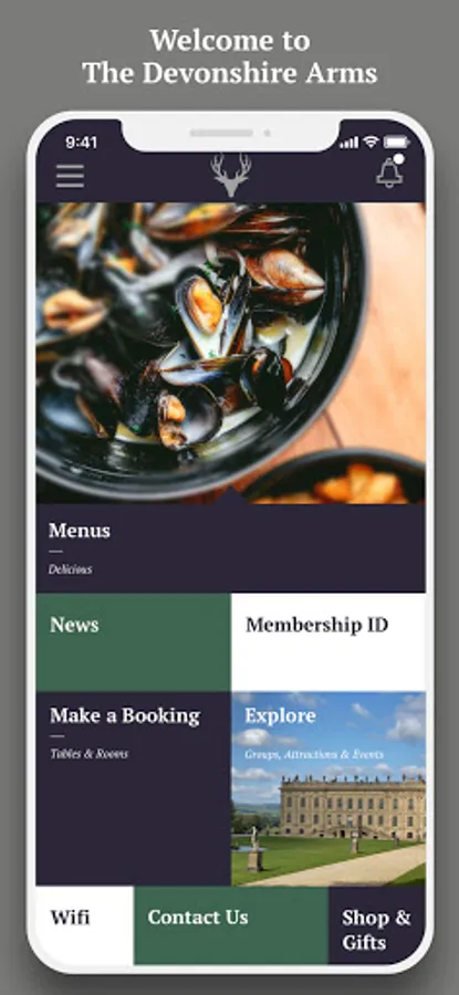 Through this app you'll be able to view our menus, make a booking, explore our local area, connect to the WiFi, shop gifts and receive special offers and treats!
