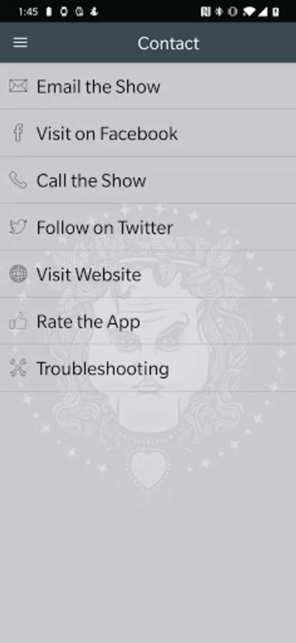 * Quick access to all the contact methods for the show like call, email, web, Facebook, and Twitter