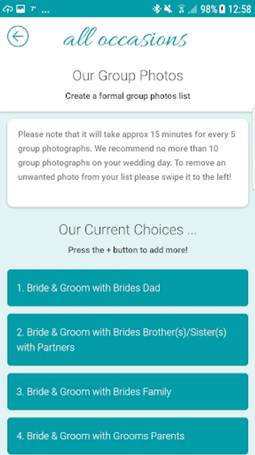 Our mobile app has been designed for all of our customers to manage all aspects of their wedding day with us. As an exclusive customer you have a gateway in to all the important pieces of information such as group shots, wedding day itinerary, messages, albums and products and lots more.