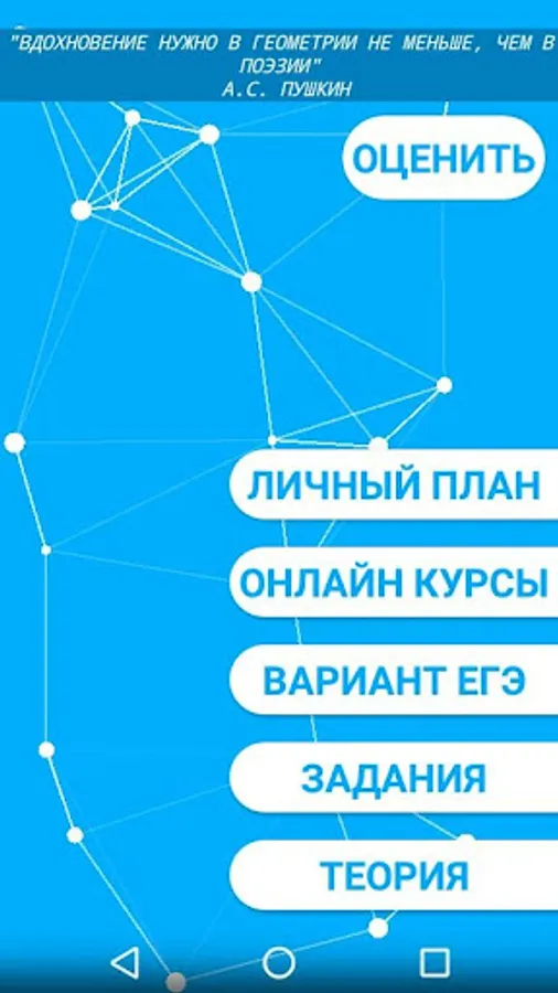 Training is conducted through a personal plan, which includes a detailed theory, analysis of tasks and practice. Each task in the application has a detailed solution. To speed up your learning, we have gathered for you the most useful online resources for each topic, which you can view directly from the application. The main task of Mathematics is to make preparation for the Unified State Exam accessible and easy for everyone, regardless of the initial level of knowledge.