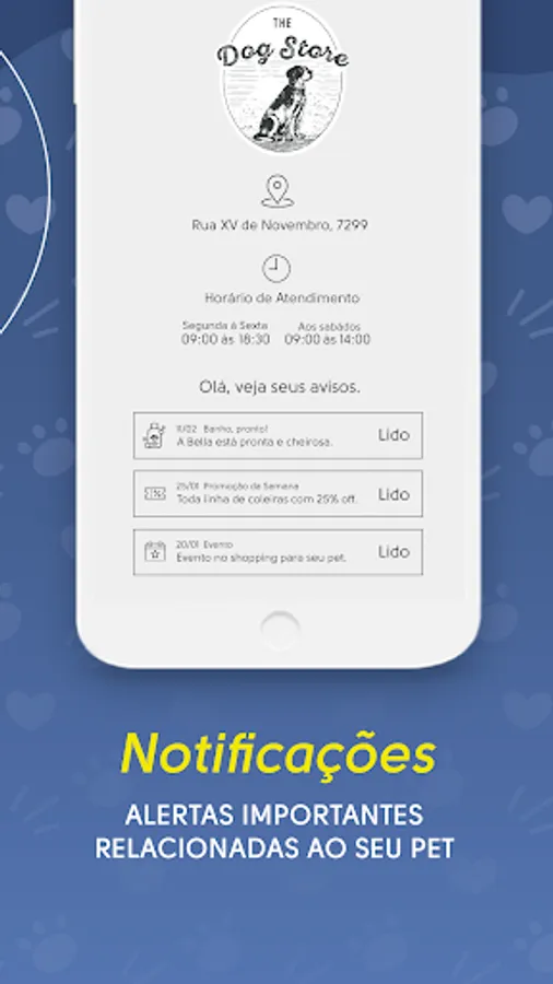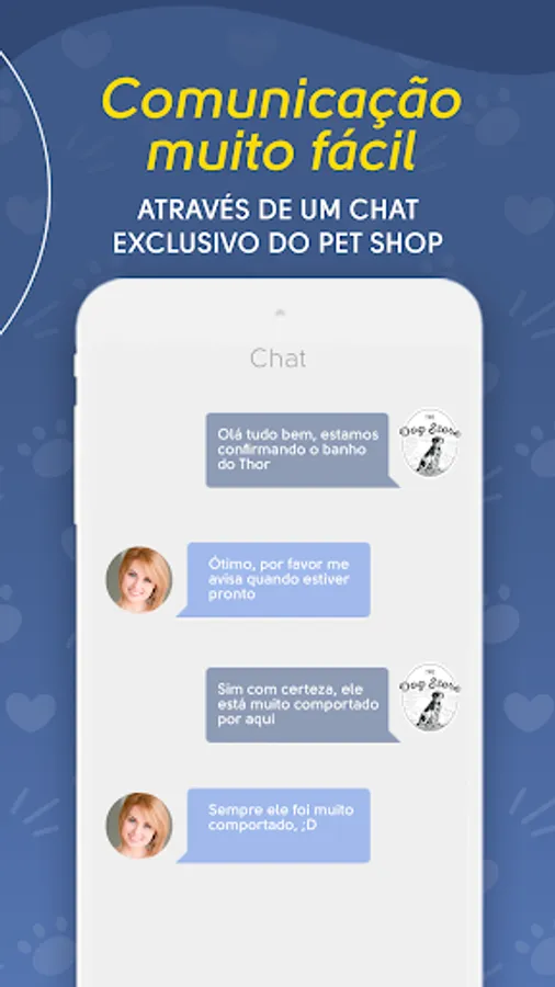 We created and made available this application, seeking to make all interaction with us even easier, there are several functions available, some of these are: bath schedules, veterinary consultations, vaccination history, warnings, and also a chat for any questions you have, just to call. Undoubtedly all this quickly and easily.