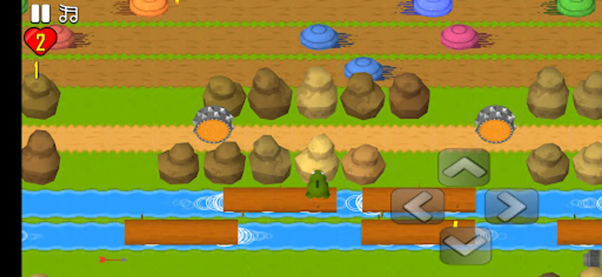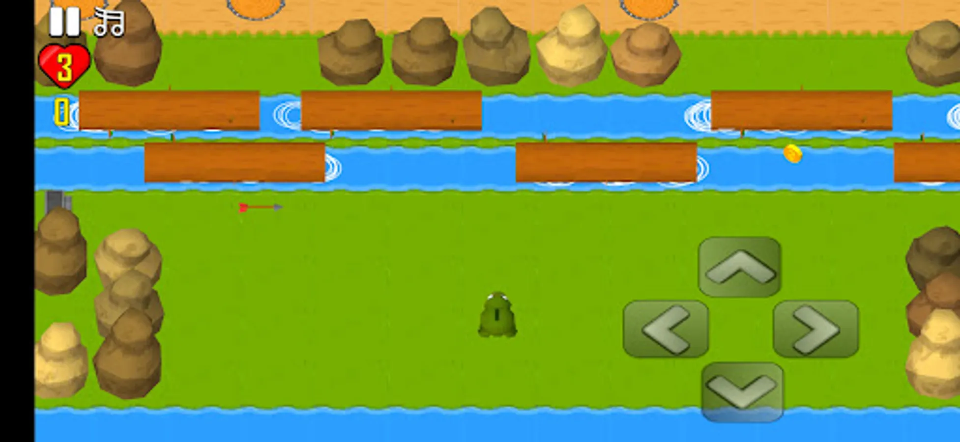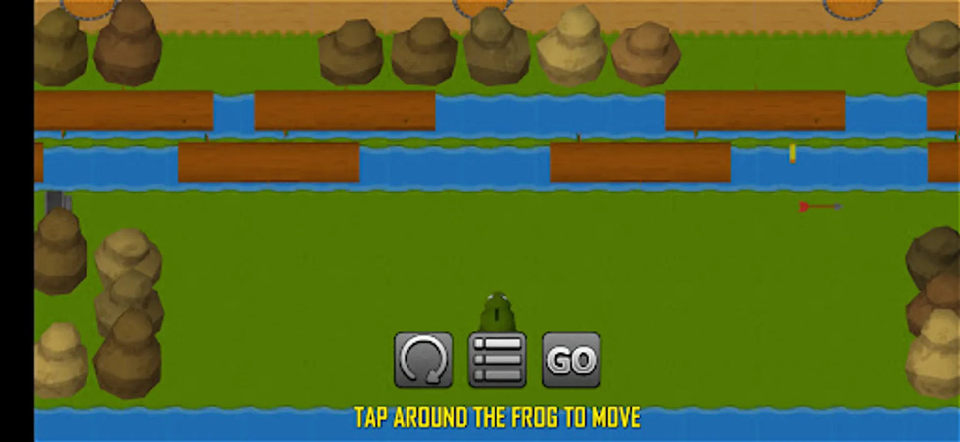 Make the frog cross, dodge arrows and fireballs, jump over tree branches in rivers, and look for treasure chests.