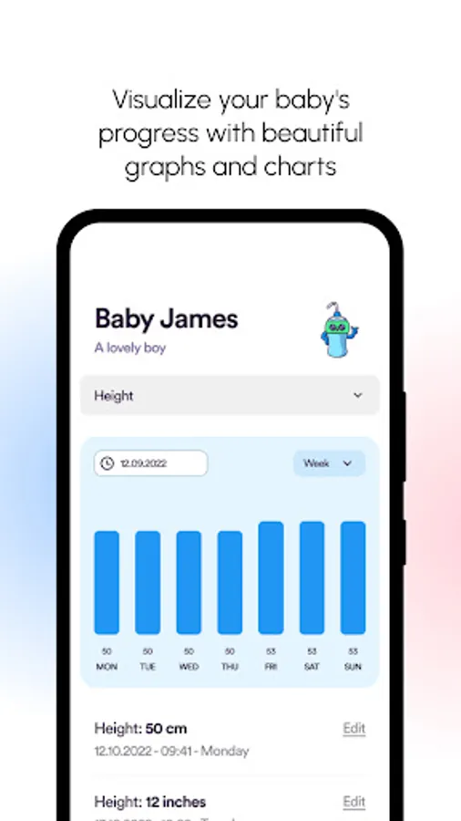 The Baby Tracker Pro goes beyond basic tracking. It transforms your data into beautiful, interactive graphs and informative charts, allowing you to visualize your baby's progress effortlessly. Stay connected to your child's development like never before, all conveniently accessible within the palm of your hand.