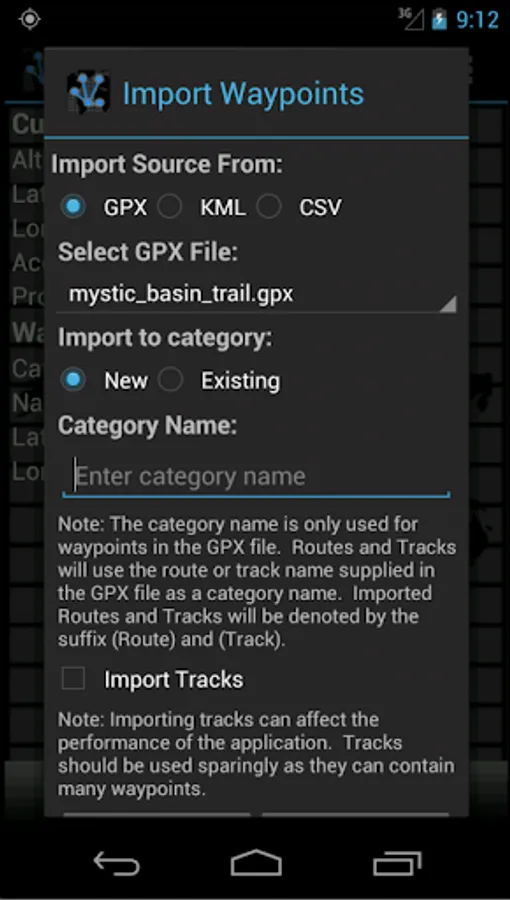If you have location data stored in GPX format Waypoint can import your data and automatically categorize it into Waypoints, Routes, and Tracks. Or, if you have location data that is in KML format Waypoint can import it as well.