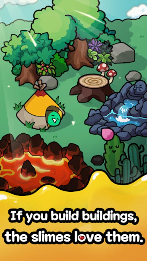 Help King Slime fill Slime Land with cute slimes and cool buildings!