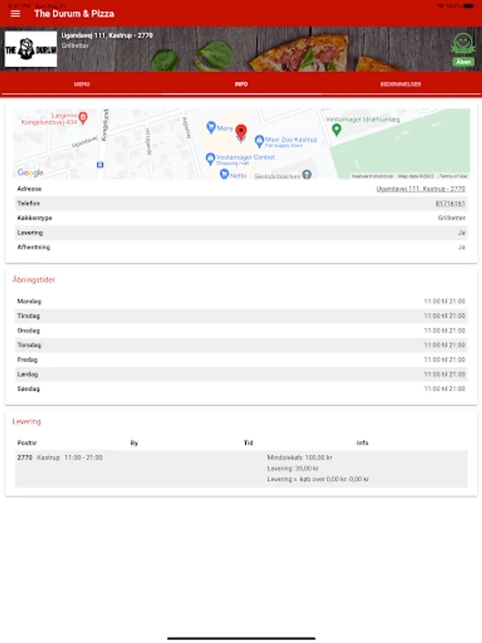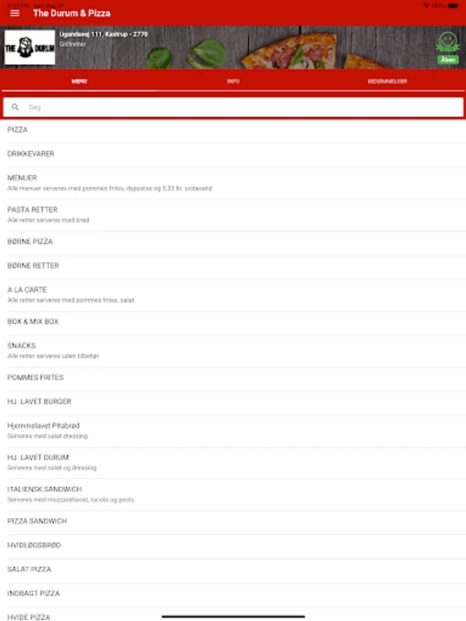 Bestil pizza, burger, pasta, m.m. med få tryk, nemt og hurtigt!