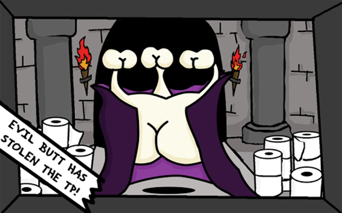 Evil Butt has stolen all of the toilet paper in the universe, destroyed your toilet spaceship, and left your butt stranded among the stars. Dodge asteroids, gather parts to repair your toilet spaceship, and collect designer toilet paper and plungers while you fart through space.