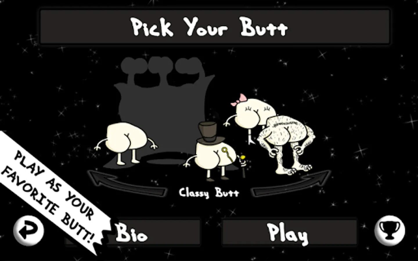 Have you always dreamed of being a butt farting through space? Of riding in a toilet spaceship and expanding your collection of toilet paper? Well now that dream can become a reality when you play as your favorite butt in this weird space adventure!