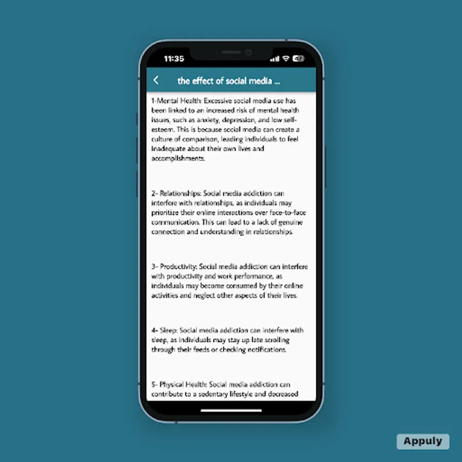 Through this app, users can access a wealth of information on the effect of social media on teenagers, mental health, society, identity, body image, relationships, identity construction, self-esteem, students, politics, and addiction. The app is user-friendly and provides a variety of resources, including articles, research studies, videos, and expert opinions.