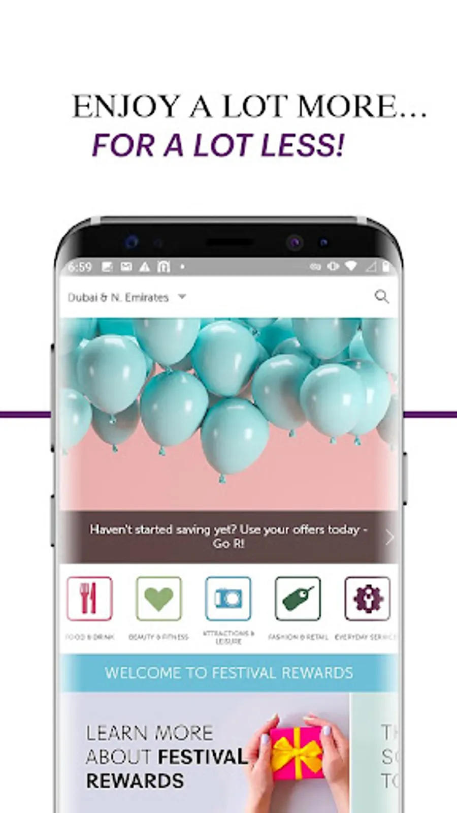Festival Rewards is a lifestyle and loyalty app centered around enabling you to live your life to the fullest without restriction. We want you to be able to experience everything life has to offer without compromising. With Festival Rewards, you will gain free access to exclusive 2-for-1 offers and discounts at Dubai Festival Plaza and Festival City Mall.