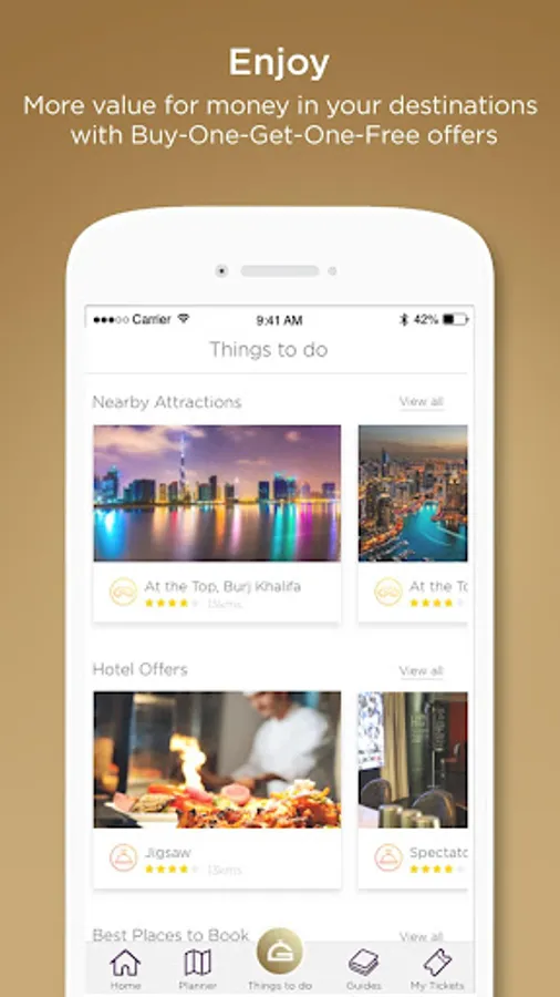 Upgrade your travel experience with the ENTERTAINER Guest. Access the best attractions in your destination and discover amazing offers from your hotel.
