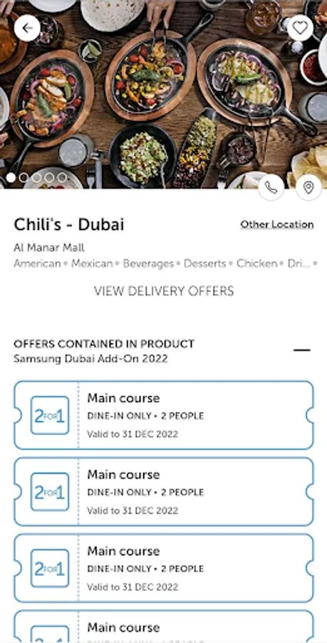 The SAMSUNG ENTERTAINER app brings you great value with thousands of of 2-for-1 and percentage across UAE. Discover new restaurants or treat the kids to a fun holiday with the SAMSUNG ENTERTAINER. All our offers are valid all year round, 7 days a week, with almost zero restrictions as to how and when you use them*.