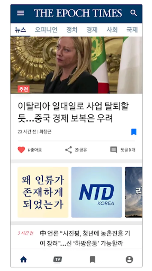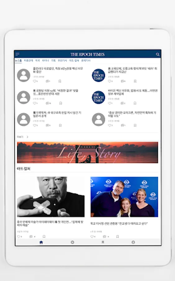 You can see headlines, latest articles, TOP NEWS, main articles, opinions, life stories, culture, art, and topical articles on the first screen.