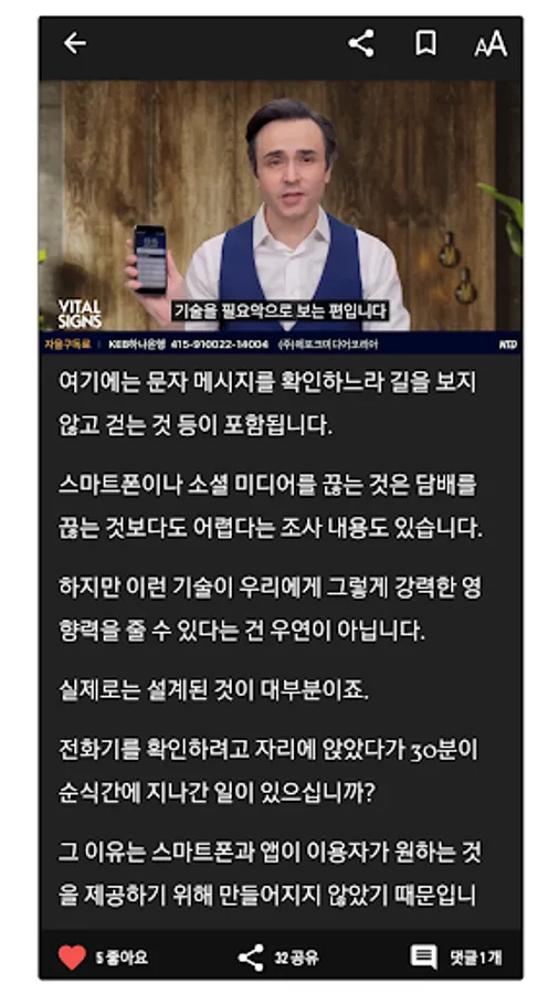 You can save and share the articles you are interested in. You can use the anti-glare dark mode.