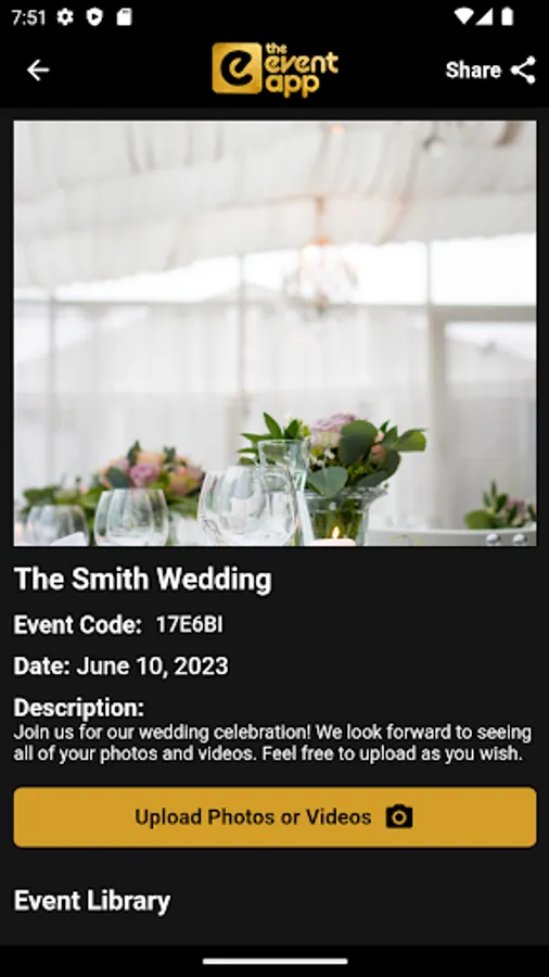 Then they just download the app and enter the event code, and they can upload all the pictures and videos they want, and you have access to all of them!