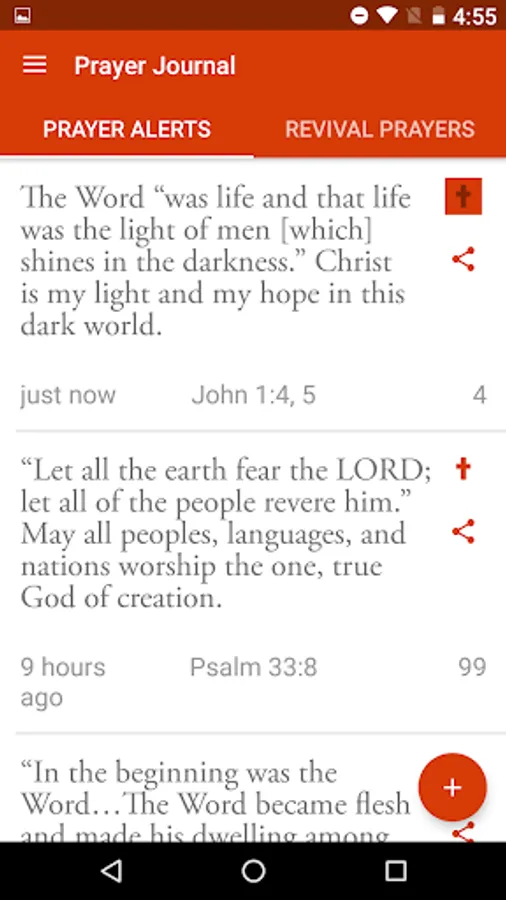 * Daily prayer reminders at 7:14 AM and 7:14 PM (automatically adapts to any time zone)