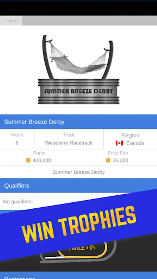 Compete race horses in unique stakes races and win a variety of beautiful trophies. Each region has its own set of stakes races, with more being added frequently! Fill your barn with champion horses who will bring you all the gold!