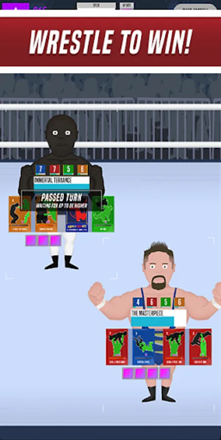 Hire wrestlers, collect move and training cards and build your roster of wrestlers to take over the Wrestle Champs world!