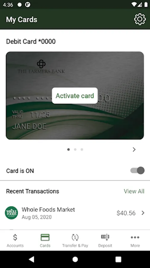 The Farmers Bank-TN Mobile app allows customers to view transactions, make deposits, transfer funds and more