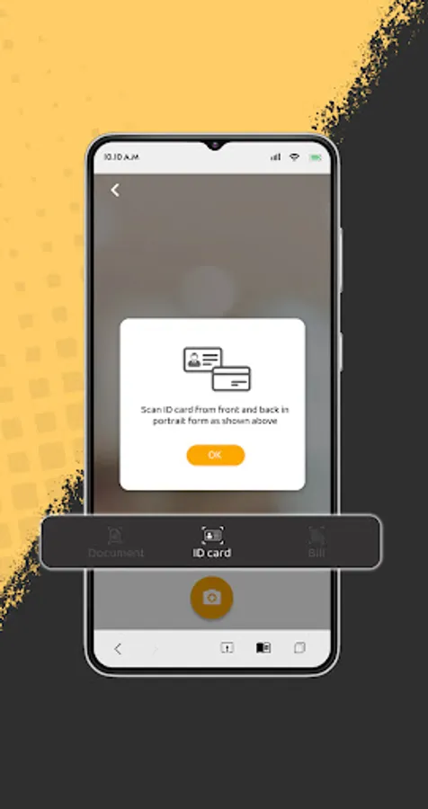 Step 5: You will get an option saying "Scan a document in portrait form as shown above". Click "Ok" and take the image. You can take as many images as you want until the right image is fetched. You can also choose from the option of ID card, Documents, and Bill.