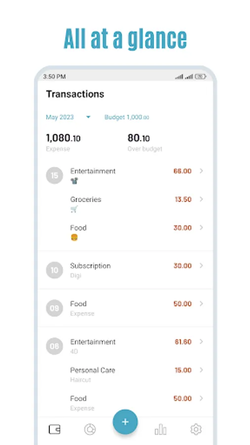 The app helps you to record daily transactions easily and keep track where's your money go.