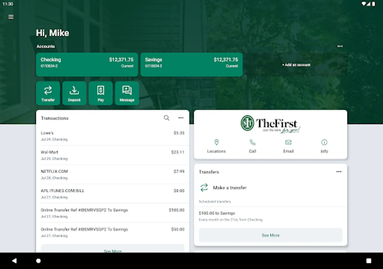 To use The First Bank Mobile App, you must be enrolled as an The First Bank Internet Banking user. If you currently use our Internet Banking, simply download the app, launch it, and login with the same Internet Banking credentials. After you successfully login to the app, your accounts and transactions will begin updating.