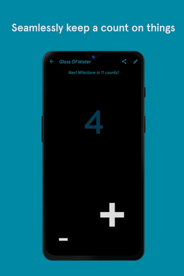 You can set milestones to commemorate a special count value. Maybe celebrate the fact that you had 15 glasses of water! You can customize the counter to fit just the perfect way you need it.